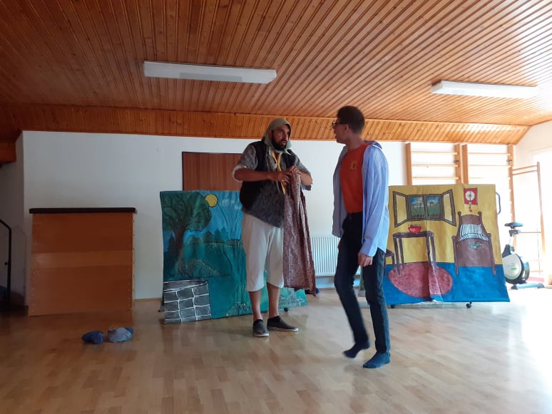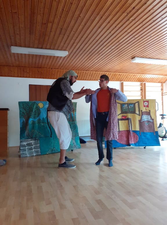V pondelok 7. júna 2021 do našej školy do dlhšom čase opäť zavítali herci z divadla Portál. Tentokrát Veselá rozprávka o strastiplnej ceste Červenej Čiapočky za chorou babičkou už bola prerozprávaná na veselšiu nôtu. Vtipne interpretovaná rozprávka, v ktorej sa striedali dvaja herci bola podfarbená piesňami a hrou na gitaru, čo vyvolávalo u našich detičiek túžbu zapojiť sa do príbehu. Široký úsmev na tvári, kývanie hlávkou zo strany na stanu, potlesk, či výkriky- to všetko sú prejavy našej radosti a spokojnosti. A bolo ich veru neúrekom. Lacko- žiak praktickej školy zažil päť minút slávy na doskách, ktoré znamenajú svet. A to priamo v hlavnej postave... bol učiteľom neposlušného vlka, ktorý sa znenazdajky vkradol do domčeka babičky, zjedol ju a chcel sa preobliecť do jej šiat. No nevedel, ako na to. Lacko ho to s radosťou naučil a zožal veľký úspech v podobe hlasného potlesku celého publika i samotných hercov.